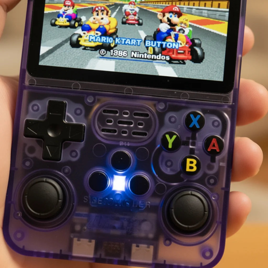 Conçue pour votre confort, la R36S ARKOS dispose de doubles joysticks analogiques et d'un D-pad ergonomique, assurant une prise en main agréable et un contrôle précis, même après des heures de jeu.